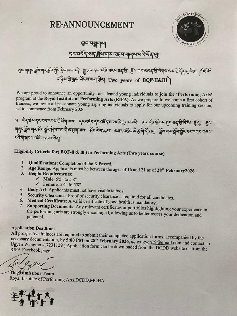 We have already selected several promising candidates from our earlier announcement; however, we continue to welcome more young and aspiring individuals who wish to pursue a professional career in the performing arts.